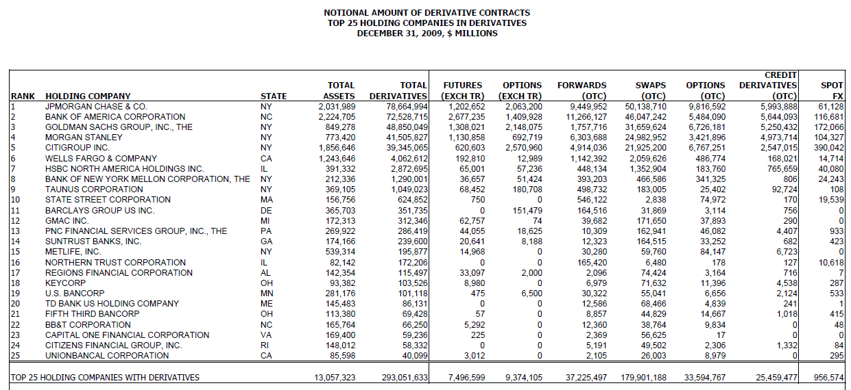 So that’s $78 TRILLION for JP Morgan, with Bank of America lamely limping behind at $44 trillion. The bank holding company top 25 is even better: