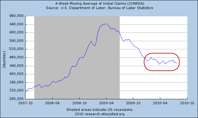 The above chart shows no improvement in weekly claims for going on 8 months, dating back to mid-December.
