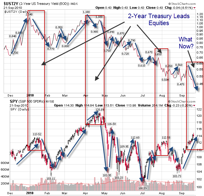 Two year treasury yields have fallen to a record low, yet stocks have been rising.