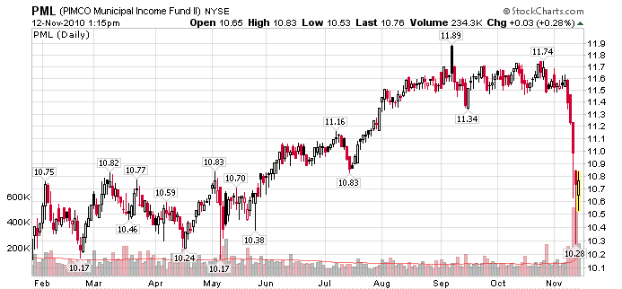 A tip of the hat to Barry Ritholtz for noticing the California Muni Bond Fund Shellacking