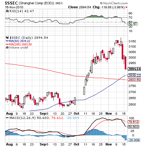 Now of course, the declines of recent days aren’t solely due to market dissatisfaction with “QE2” as we’ve had a blizzard of troubling news out of Europe surrounding Ireland, Greece and Portugal and worries about rising inflation in China that has caused their markets to plummet.