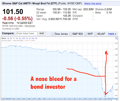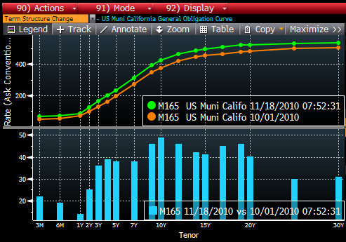 Ireland is being dragged and kicked into a bailout. The bond market forced them into it. When yields screamed to peak near the two-year (just a week ago) the jig was up. California will be no different. If the two year cost of money rises to ~80% of the 20 year yield we will have a crisis and a bailout.