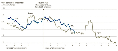 As the accompanying chart indicates, the core inflation figures are charting a path roughly similar to one shown in Japan 15 years earlier. That has been true despite a much stronger reaction by the American central bank, which was determined not to make the same mistakes the Japanese made.