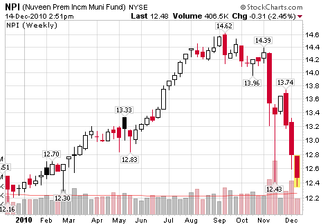 Inquiring minds are watching a huge selloff in Municipal Bond Funds. Here are a few charts.