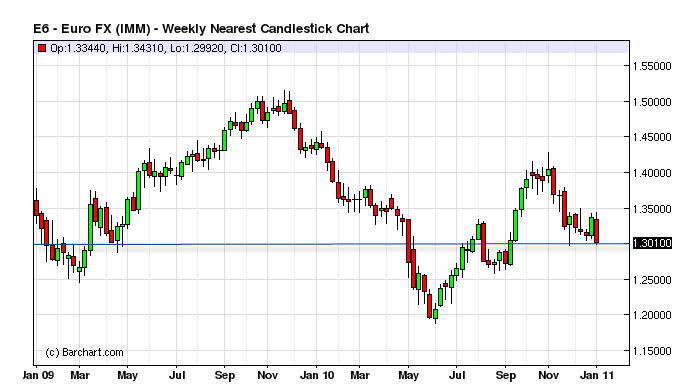Portuguese and Spanish 10-year bonds are getting smacked hard as refinancing needs mount. Greek yields are at all-time highs and a milder (for now) selloff continues on Belgian and Italian bonds as well. A flight to safety on German bonds is again in play, with German 10-year yields dropping slightly. The Euro once again flirts with December and Mid-September lows.