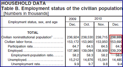 Please consider the Bureau of Labor Statistics (BLS) December 2010 Employment Report.