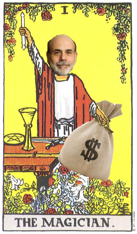 Is this what Bernanke envisioned the night he went to sleep after his first day on the job five years ago? I doubt it. He probably also didn’t imagine that his head would end up Photoshopped on gay porn with dollars coming out of his ass but hey, JDA didn’t imagine five years ago she’d be doing that kind of Photoshopping.