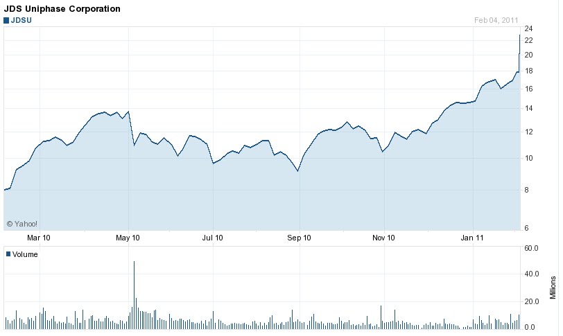 There are plenty of signs that another stock market bubble is underway. Some sectors are already experiencing parabolic moves. JDS Uniphase’s (JDSU) huge December quarter triggered an optical stock frenzy on Friday. You’re now seeing stocks pop 20-30% in a day as they beat Street estimates, much like they used to during the tech bubble.