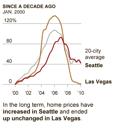 Las Vegas has given back 100% of its gains since 2000. Seattle has given back all of its gains since 2003. That’s quite a drop.