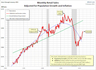 I did not factor in population growth but noted that it should be done. "Dshort" did factor it in and has a nice set of charts that suggest The "Real" Consumer Economy Remains in Depression