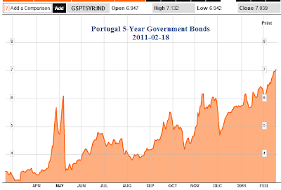Yields on Portuguese 5-year debt have soared nearly a full point in less than a month to an all time high of 7.13% closing at 7.04%.
