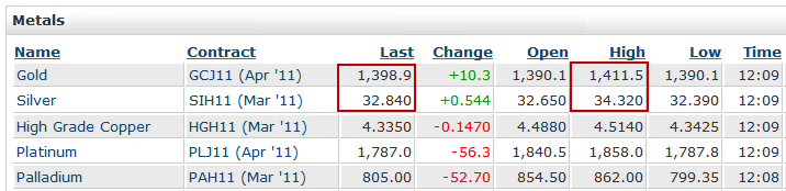 - Gold and silver are in the green but both are well off the highs.