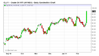 Given that Libya is the 8th-largest oil-producer in OPEC and the 12th-largest exporter overall, oil futures are flying this evening, while equities are getting hammered.
