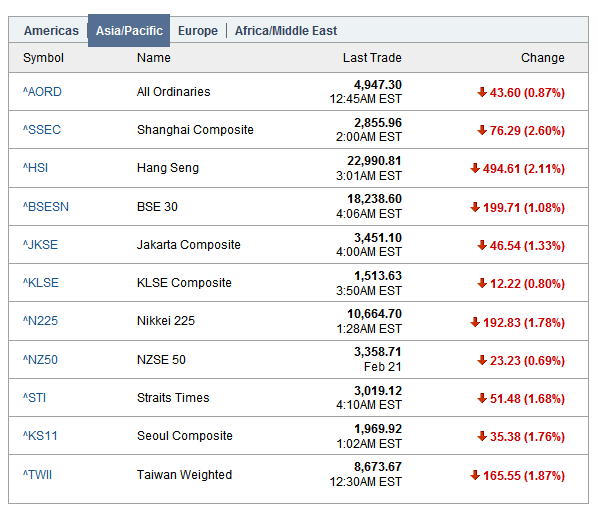 The European markets were not yet closed when I took that snapshot. All will likely close in the red but Asia got hit harder with the Shanghai stock index off 2.6%.