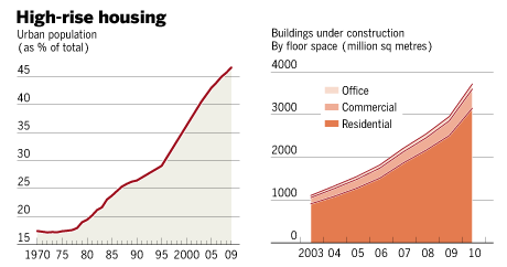 In many ways, property is the focus of the story of modern China. The double-digit economic growth of the past decade has been driven in part by the real estate explosion in more than 100 cities that has accompanied the process of industrialisation. It is also at the root of an apparent “super-cycle” of rising commodity prices that has lasted several years. Some observers see property as the country’s main economic vulnerability because of the potential for the growth of a bubble – “a treadmill to hell”, as Jim Chanos, the American investor, has put it.
