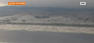 NHK showed images of people getting medical treatment in northern Japan and footage of a tsunami sweeping buildings across farmland as far as 1.5 kilometers inland. Ships were smashed into harbor walls and cars were washed away. More here >