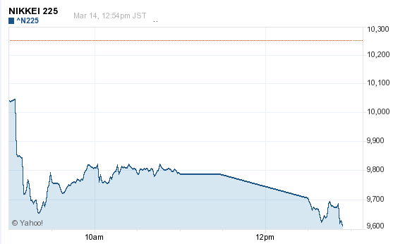 In the equity markets, the Nikkei opened lower then quickly plunged before recovering a bit to finish the morning session down 4.53%. In the afternoon session, the Nikkei slipped again to -6.2%.