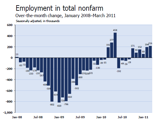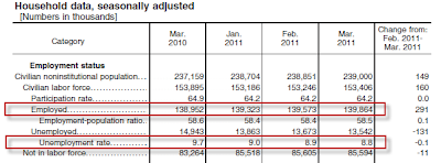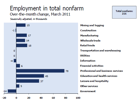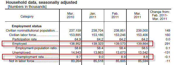 Please consider the Bureau of Labor Statistics (BLS) March 2011 Employment Report.