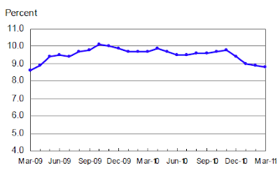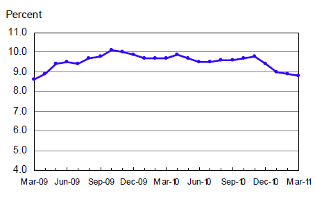 - The number of unemployed persons (13.5 million) and the unemployment rate (8.8 percent) changed little in March. The labor force also was little changed over the month. Since November 2010, the jobless rate has declined by 1.0 percentage point.
