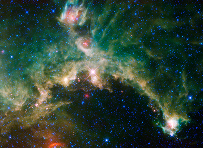 Seagull Nebula. Via WISE (Wide-Field Infrared Survey Explorer). Credit: NASA/JPL-Caltech/UCLA.
