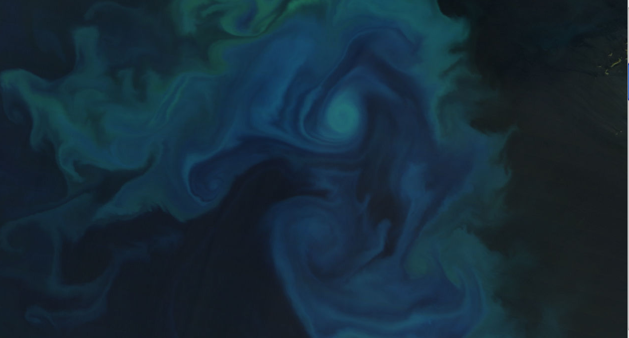 Phytoplankton bloom in the North Atlantic. Via the Earth Observatory. Credit: NASA, Jeff Schmaltz, MODIS Rapid Response Team.