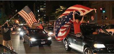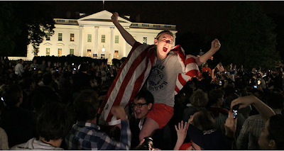 The news touched off an extraordinary outpouring of emotion as crowds gathered outside the White House, in Times Square and at the Ground Zero site, waving American flags, cheering, shouting, laughing and chanting, “U.S.A., U.S.A.!” In New York City, crowds sang “The Star-Spangled Banner.” Throughout downtown Washington, drivers honked horns deep into the night.