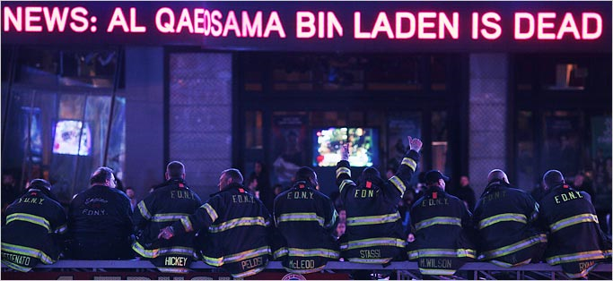 Last night President Obama announced that Bin Laden was killed in a gunfight in Pakistan. The New York Times reports Qaeda Leader Killed by U.S. Forces, Found in Raid on Mansion; Buried at Sea
