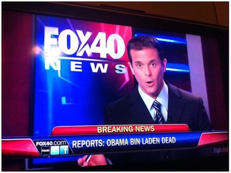 When the news broke last night that Osama bin Laden was dead of a shot to the head by U.S. assets, news anchors were practically creaming their chinos to be covering this historical event. I counted no less than 7 instances of CNN’s John King repeating "Osama bin Laden is dead," as if he was desperate to get his voice on the soundbite YouTube mash-up that would surely follow.