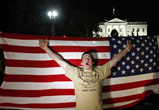 Meanwhile, at Ground Zero, a crowd of a similar demographic also magically formed. What were they chanting? "USA! USA!"