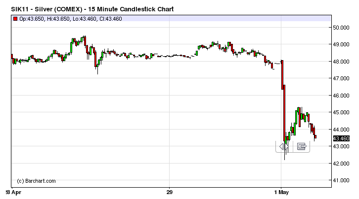What changed my mind was a post this evening by Zero Hedge: More On The Silver Dive: "Massive Sell Orders" Coupled With Bolivian Nationalization Halt Combine For Perfect Weak Hand Shakeout Storm