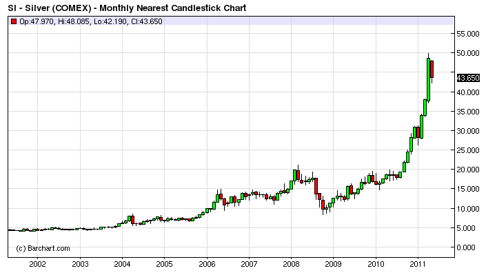 The reason is parabolic spikes never end well. The problem is figuring out when they may end. As for me, I see nothing attractive about buying silver at $43 in a parabolic spike, when it was $17 less than a year ago.