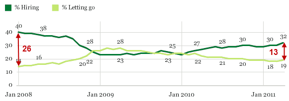 Percent of Companies Hiring Minus Percent of Companies Firing