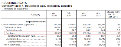 Please consider the Bureau of Labor Statistics (BLS) April 2011 Employment Report.
