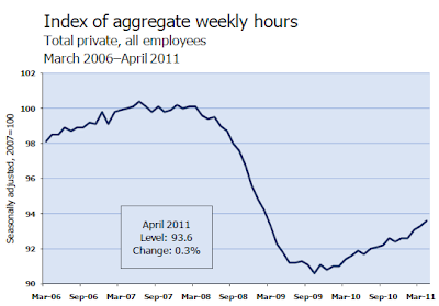 The index of aggregate weekly hours for all employees rose by 0.3 percent over the month. Since reaching a low point in October 2009, the index has increased by 3.3 percent.