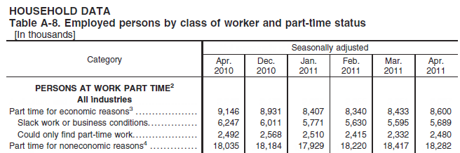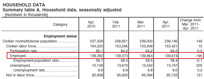 Please consider the Bureau of Labor Statistics (BLS) April 2011 Employment Report.