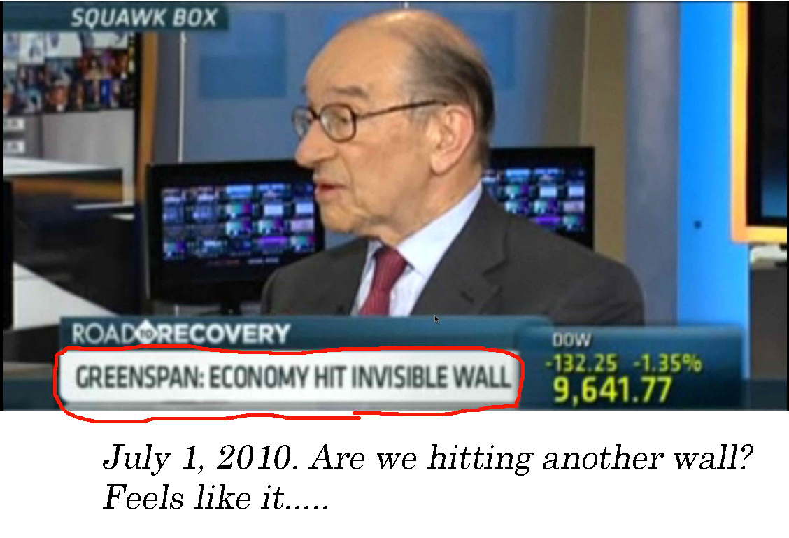 Has the economy hit a wall? Again? For me, this is reminiscent of last summer. That was also a period where there was evidence of a slowdown. Greenspan scared the hell out of everyone with his comment, “The economy has hit an invisible wall”.