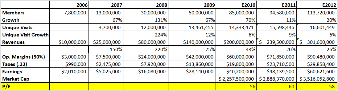 A Seeking Alpha Post by Albert Babayev in January 2011 called Betting on Social Networking discusses revenue and earnings.