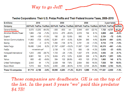 It’s old news that America’s biggest corporations pay little in taxes. It’s been well documented that GE is a functional tax deadbeat. I don’t think these big companies are cheating on their taxes. It’s the tax code that those same big companies (and their lobbyists) have written over the years.