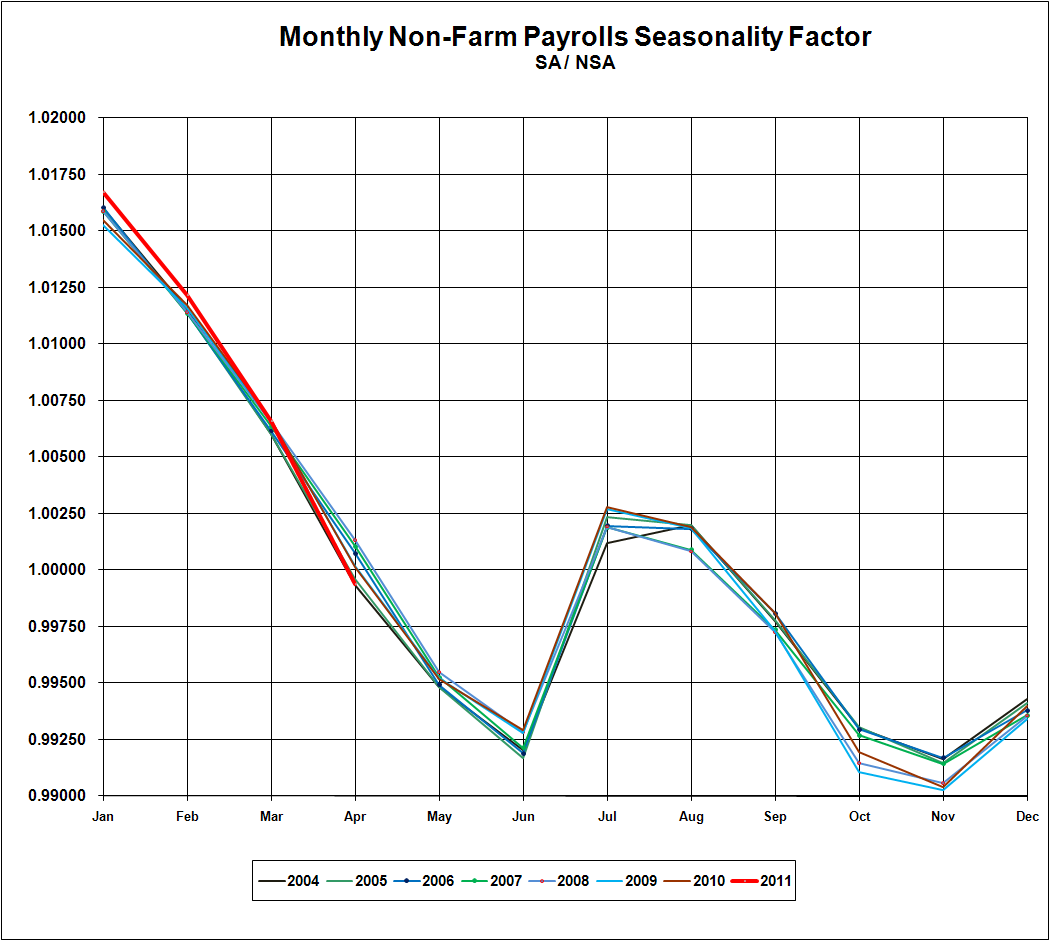 In fact the number was in line if not historically a bit low for a May adjustment. It showed the type of seasonal hiring one might expect for the beginning of summer.