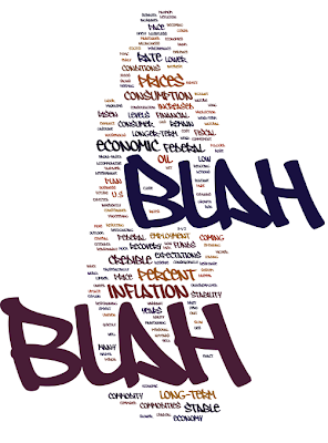 I can condense Bernanke’s speech down to a single paragraph. An interesting set of word cloud images follows this summation.