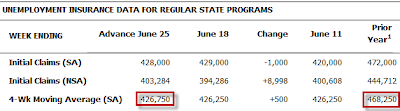 In the week ending June 25, the advance figure for seasonally adjusted initial claims was 428,000, a decrease of 1,000 from the previous week’s unrevised figure of 429,000. The 4-week moving average was 426,750, an increase of 500 from the previous week’s unrevised average of 426,250.