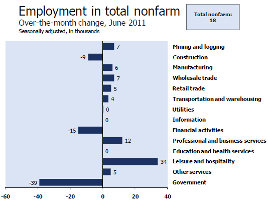 Please consider the Bureau of Labor Statistics (BLS) June 2011 Employment Report.