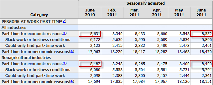 There has been virtually no improvement in part-time employment in a full year. 8.5+ million workers want a full time job and cannot find one.