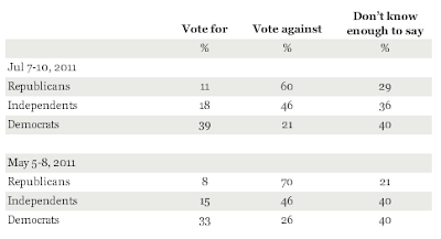 A follow-up question finds Americans more sympathetic to the Republicans’ argument than Obama’s. Specifically, when asked to say which is their greater concern, 51% say raising the debt ceiling without plans for major future spending cuts concerns them more, while 32% are more concerned with the risk of a major economic crisis if Congress does not take action.