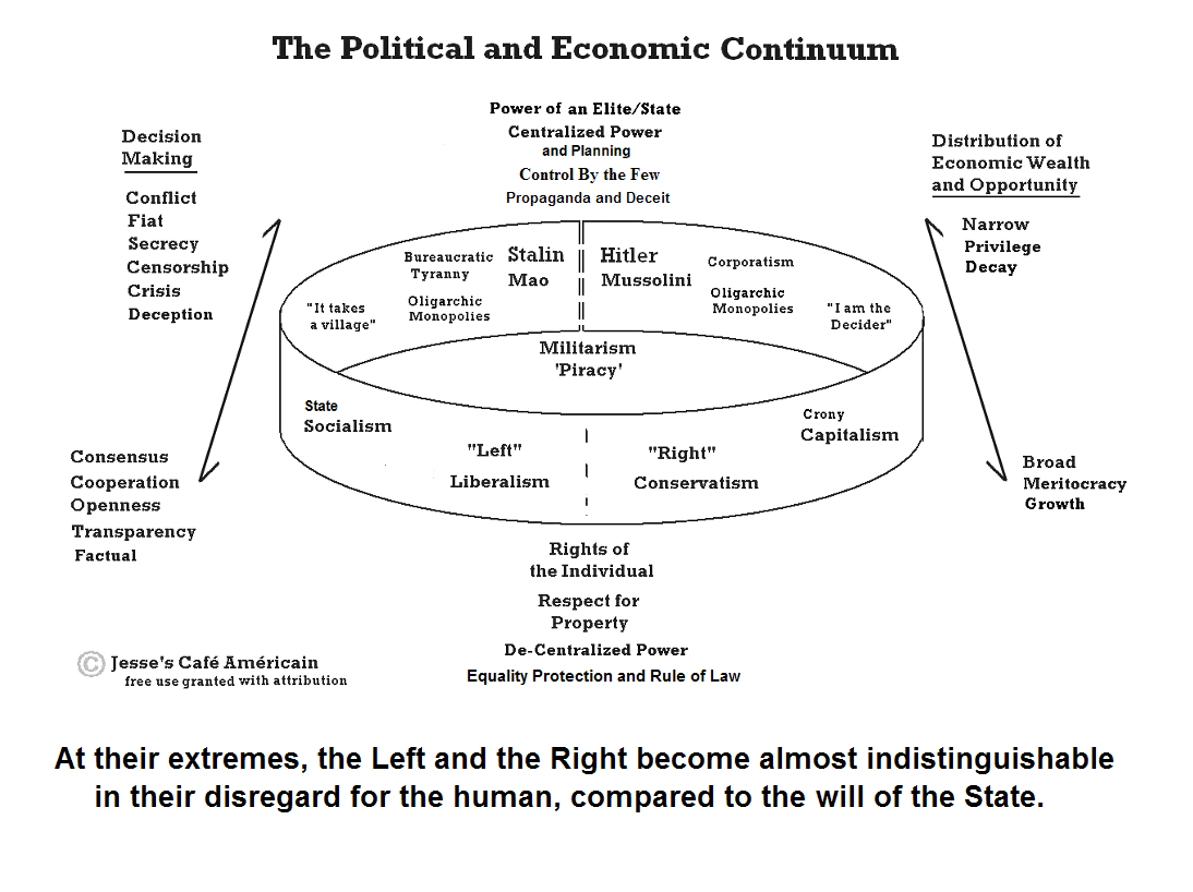 So for example, if someone were to come out and say, "I think we should adopt the social structure of a nation and form of government your father spent much of their lives fighting and dying, where you give up most of your wealth and freedom to serve the powerful few who run the state," there would be a general uprising. But if the proposition is structured as the logical consequence of ‘hard economic choices,’ and a serious of crises, people can be led off the cliff, a few steps at a time.