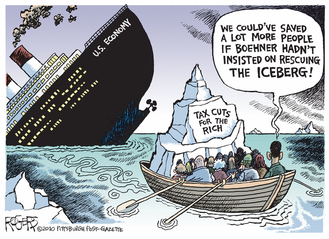 Democratic lawmakers were rightly furious when they heard about these details this week, calling the plan wholly unbalanced. But, in the end, it was Mr. Boehner who torpedoed the talks. He said Friday evening that he and the President had come close to agreeing on $800 billion of the revenue increases (the equivalent of letting the upper-income Bush tax cuts expire as scheduled next year — not much of a heavy lift) but could not stomach another $400 billion ($40Bn a year!) the White House wanted to raise through ending tax loopholes and deductions.