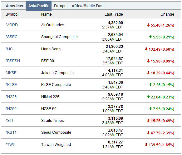 Australia, South Korea, and Taiwan are all down well over 1% each. Nothing is up by even .25%. US S&P 500 futures we up over 10 points but are now slightly red although Europe is slightly green.