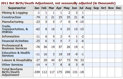 Birth/Death assumptions are supposedly made according to estimates of where the BLS thinks we are in the economic cycle. Theory is one thing. Practice is clearly another as noted by numerous recent revisions.