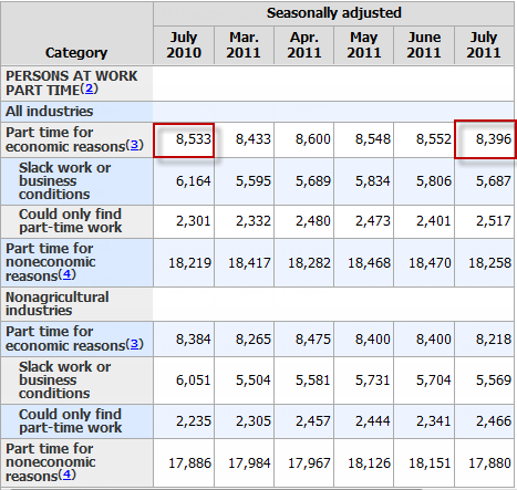 There has been almost no improvement in part-time employment in a full year. 8.4+ million workers want a full time job and cannot find one.