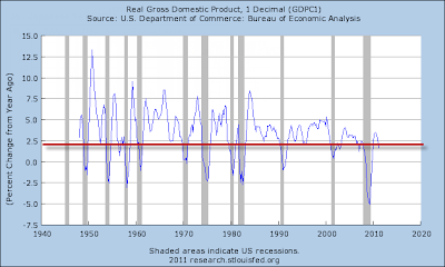 Nearly every time Real GDP dips below 2%, the economy was either in recession or headed for recession.